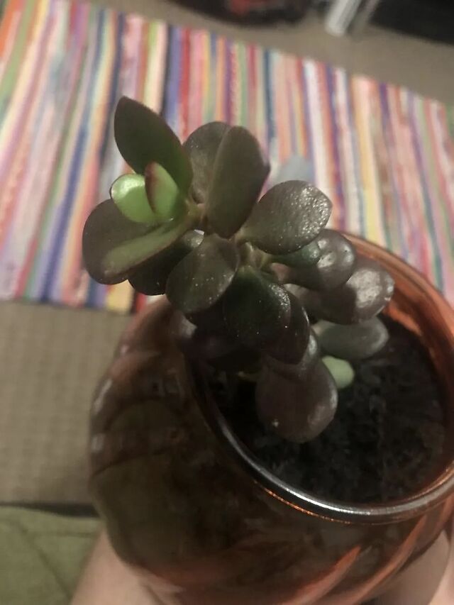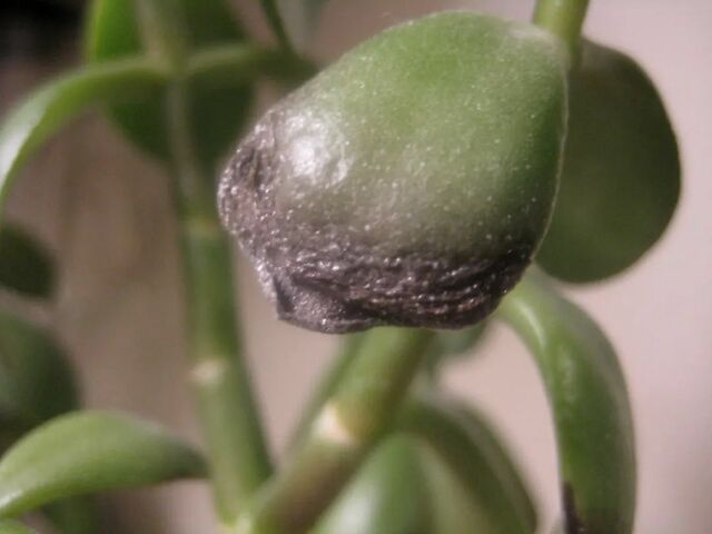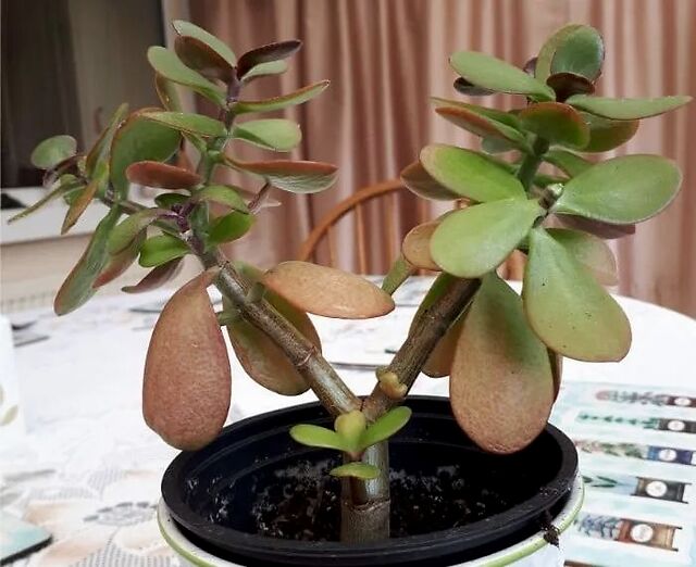 玉树的叶片是蜡质的,叶子特别肥厚,无论是叶片、枝条或根系里,都能储存水分,一旦浇水过度频繁,就容易导致根茎或叶片腐烂,叶子会慢慢变成褐色,最终会腐烂发黑。
