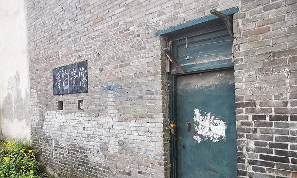 沿着道路继续前行,还可以看到印有“梦寐音像”字样的黑白广告牌,不见主人,大门布满灰尘,看起来已经关门许久。厂区的家属区附近,可以看见种植的胡豆,挂果的枇杷树、樱桃树,以及新近栽种的四季豆、玉米苗等等,仿佛走进了乡村田园。