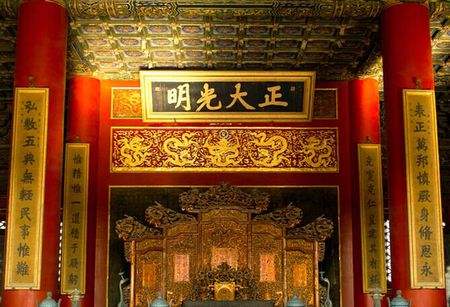 正大光明四字匾,被其继承人康熙皇帝评之曰:结构苍秀,超越古今,光昭日月,垂诸水久,钦定为子孙万世学习的楷模。从历代帝王的实录、诏令和出版的官书中,无不把自己的统治和所作所为美之曰光明正大,而且出之于文字,刻制成碑匾,给人以太平盛世和天子圣明之感。