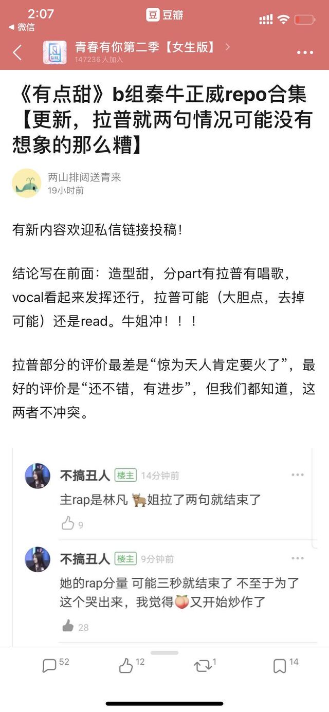 此次公演的另一大亮点是秦牛正威在《有点甜》中再次挑战rap,据repo透露这一次牛姐不仅不再是reader,实力也有很大的进步,可以说是目前最适合她的一次舞台。小编觉得节目播出到现在,其实不难看出秦牛正威的努力,这次会不会如repo所言有惊喜,还得看节目才能知道。