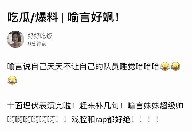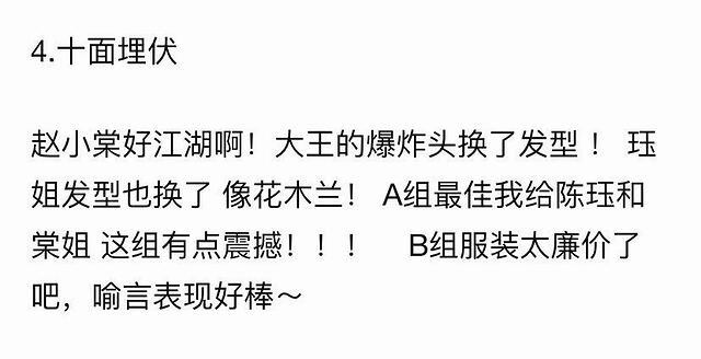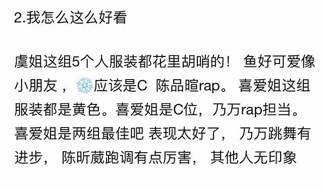 不过,网友讨论最高的还是赵小棠,这次她终于可以挑战适合自己的歌了。不少网友都提到了她的后空翻,果然是民族舞出身,棠姐一出手就知有没有。另一组蔡卓宜依旧很美,第一次尝试rap,进步比想象的好很多,期待不一样的蔡姐。喻言、曾可妮、徐紫茵三大强者汇聚在一起,她们的实力有多强,应该就不需要小编再多做描述了吧,期待就完事了。