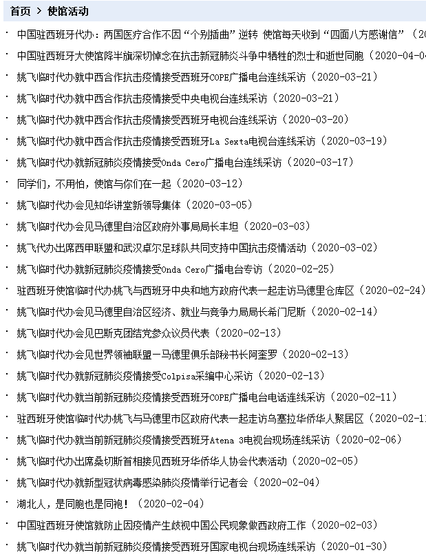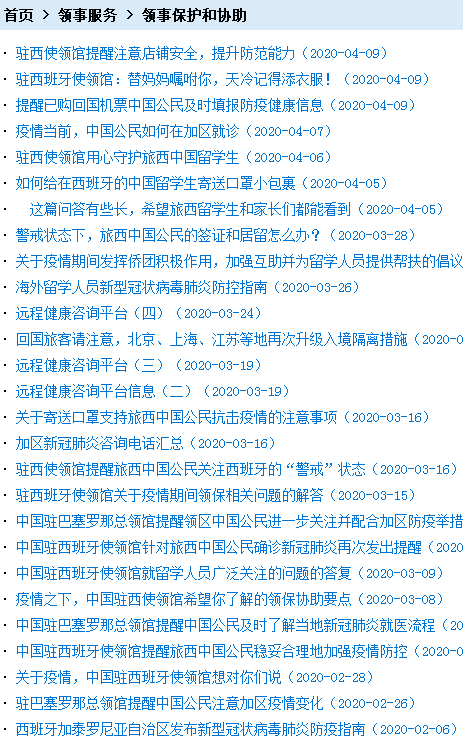 中国驻马德里大使馆、巴塞罗那总领馆的工作也很扎实,每天关注中国籍确诊人员收治情况,随时跟踪他们的病情发展,并为他们设立专门微信群,邀请国内8位医生驻群答疑解惑。此外,使馆还专门增设领保热线电话,每日耐心答复上千来电和来信咨询,安抚侨民中目前存在的一些紧张和恐慌情绪,指导就医流程,跟进治疗情况。