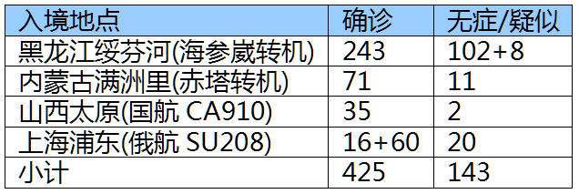在与俄罗斯相距上千公里的内陆省份山西,4月6日,国航CA910(莫斯科-北京)航班被分流降落到太原,现场截留确诊25人,至12日确诊已增加到35例,另有无症状感染者2例。