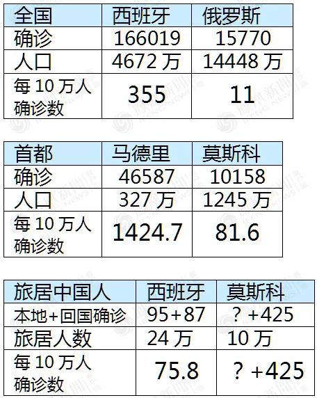 综合来看,在俄华人被感染的概率,暂可按俄本地人的1/2估算。这也已经是一个很高的比例了,毕竟在西班牙很多华人也是从事零售、餐饮等一线服务业的。