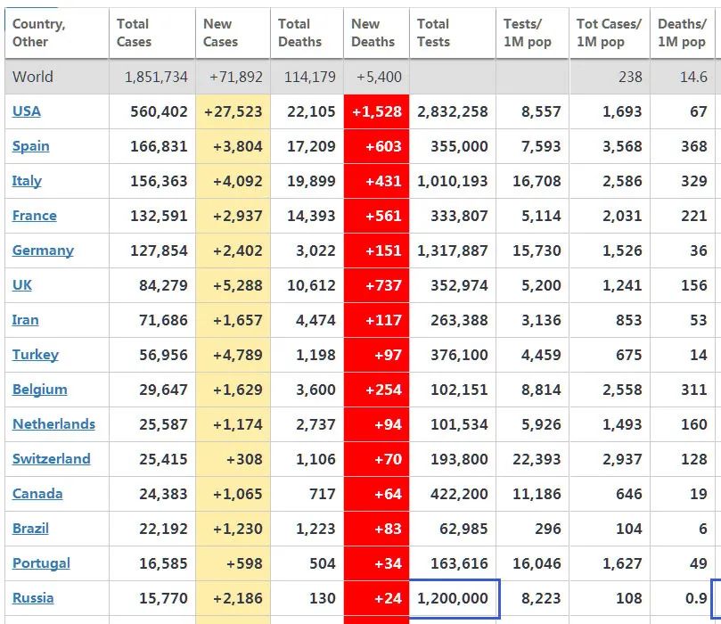 也不是。据俄媒体声称的数字,俄罗斯至今已进行了120万次检测。