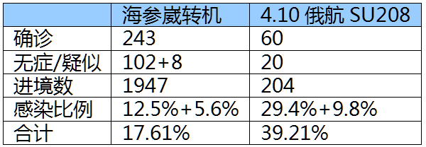 5天后,4月9日晚上俄航飞往上海的SU208航班(这是一趟临时航班),10日抵达后,2天时间在80名疑似中已经查出确诊病例60人。