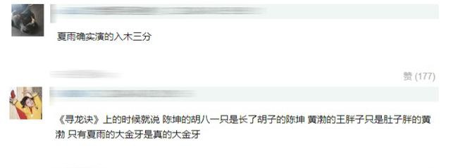 因此夏雨的版本也时常被赞极其贴近原著,被称演得入木三分,就是金牙本人,甚至还一度有网友这样评价:"陈坤的胡八一只是长了胡子的陈坤,黄渤的王胖子只是肚子胖的黄渤,只有夏雨的大金牙是真的大金牙"。且先不论对其他两位演员的判断是否过度严格,至少从中可以看出夏雨版大金牙是真的深入人心令人喜爱。