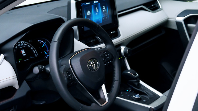坐到车内就更能感觉到丰田想要把RAV4硬派到底的决心了。平直线条繁多、层次感丰富,眼睛所及之处几乎无法把其全部的细节看完,的确是没有愧对TNGA的设计名头。不过8英寸的竖立中控屏确实有点过于突兀,也挡住了驾驶员的一部分视线,屏幕的清晰度和UI设计也一如丰田的“常规操作”,不太像是这个时代的产品。