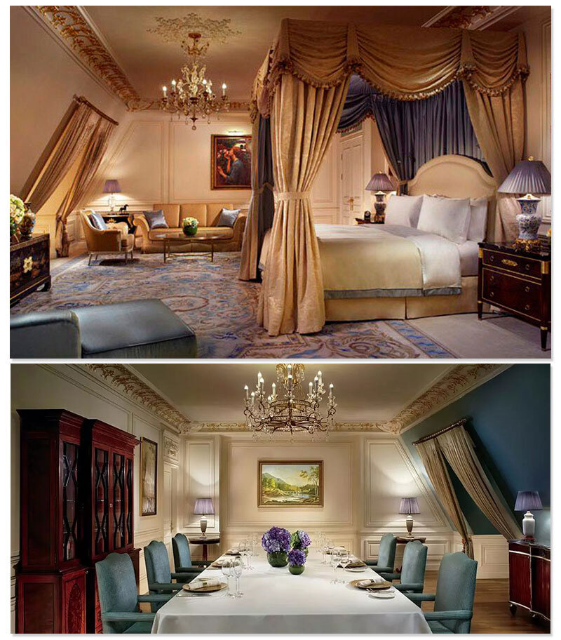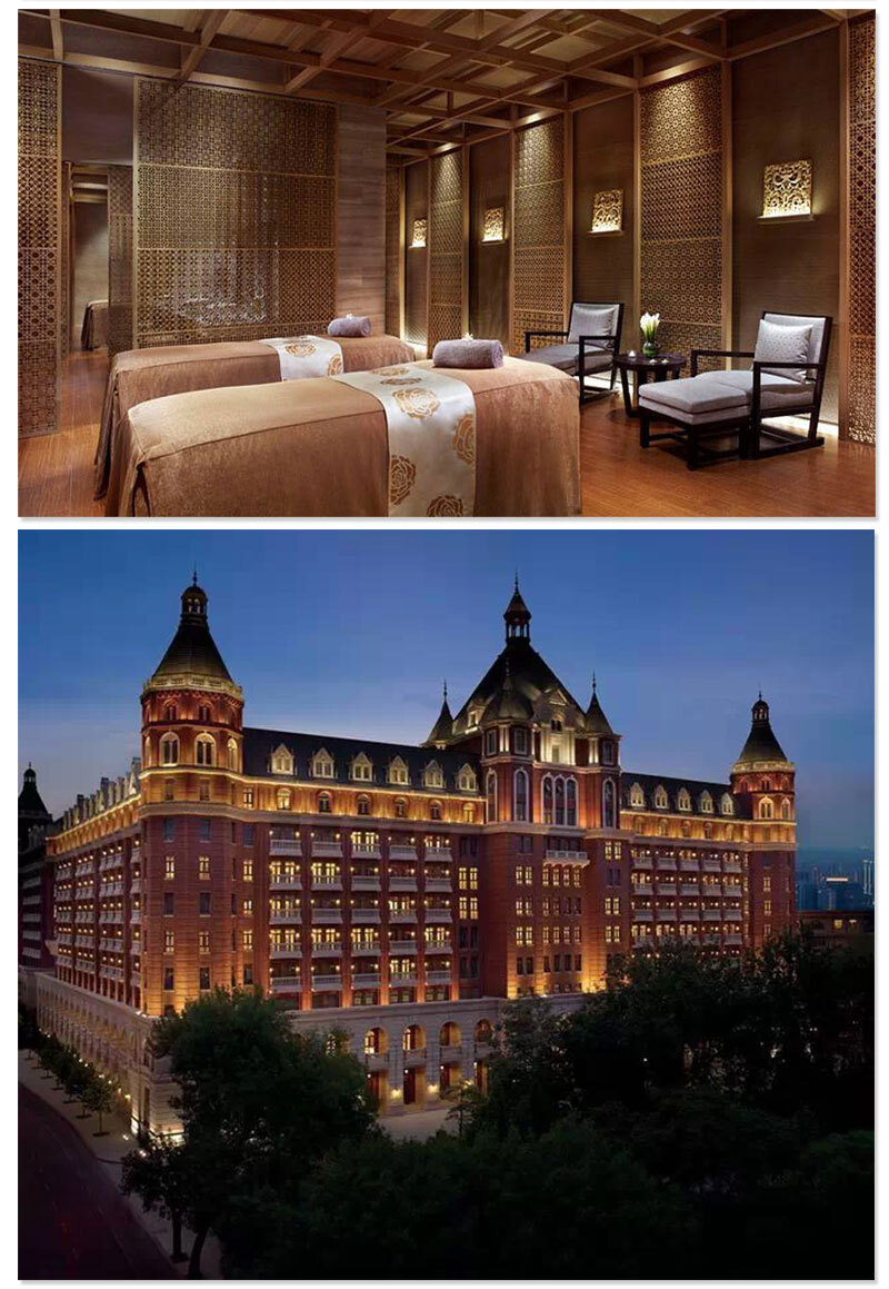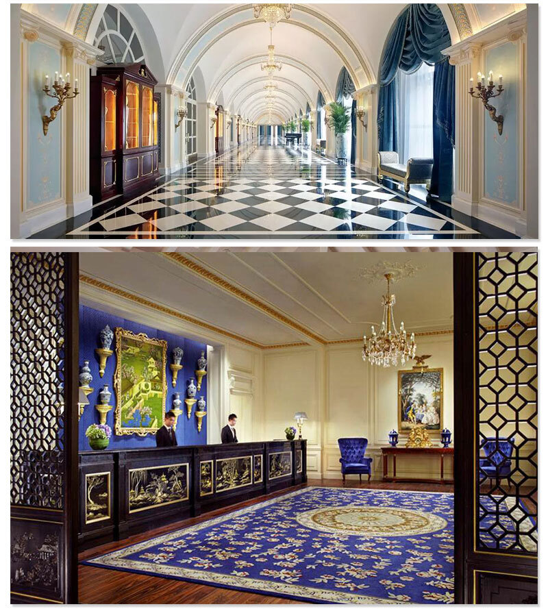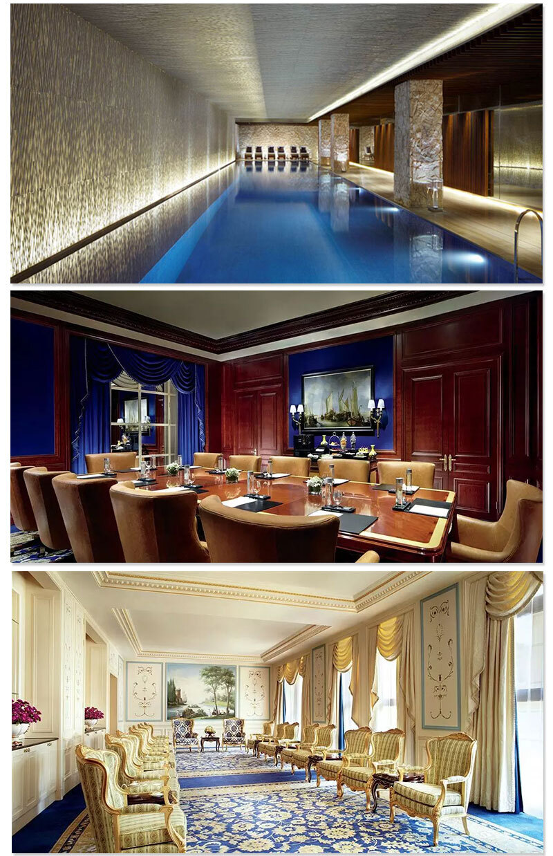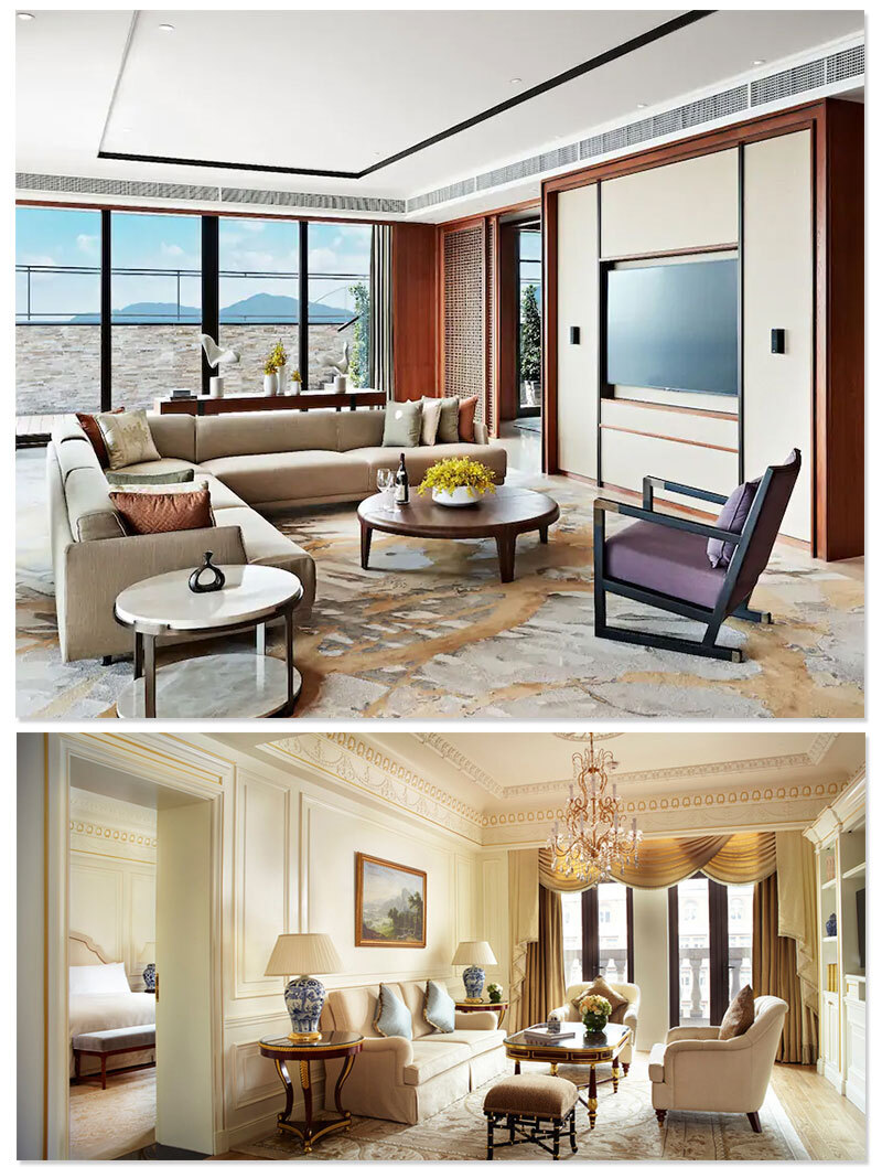 酒店以欧式风格为主,同时融入了中国传统的设计。如何融合这两种不同的风格。在酒店固装方面香港合宝明辉家具集团的设计师运用不同色调,亮黑、高级灰,原木色互相搭配,将不同的风格融合在一起。