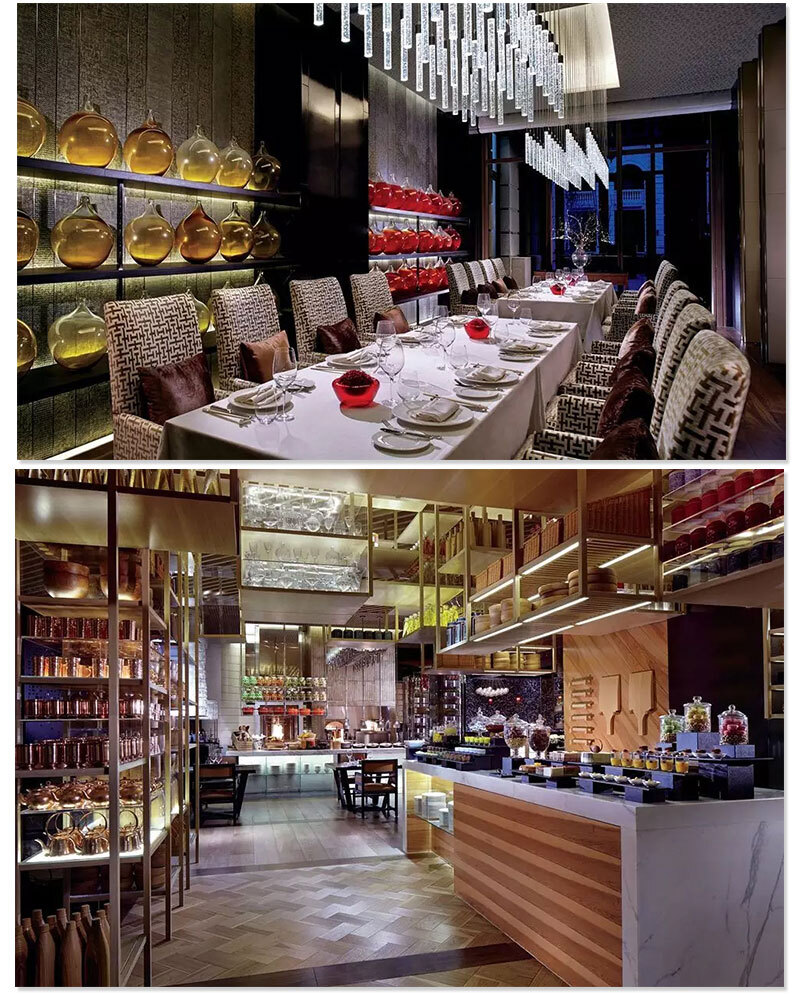 两间特色餐厅和酒吧,餐厅内古朴典雅的装修风格,融入了中国传统的窑洞,青瓦,镂空木雕的设计。诠释除了这个现代而时尚的餐厅。