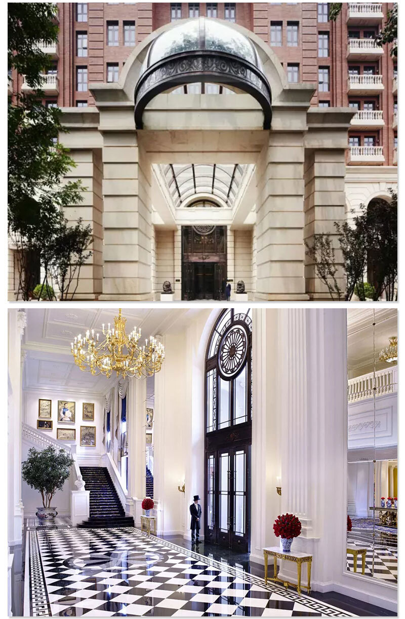 天津丽思卡尔顿酒店由法国著名的奢华酒店设计师Pierre-Yves Rochon设计,外观是巴洛克和哥特式的风格,内部设计非常欧式,其设计风格讲究搭配,注重贵族元素的融合。
