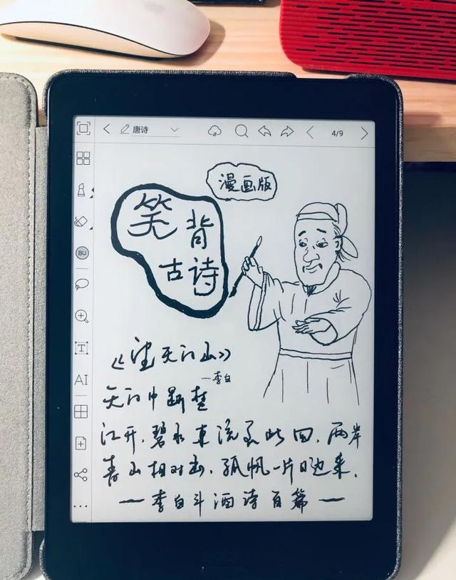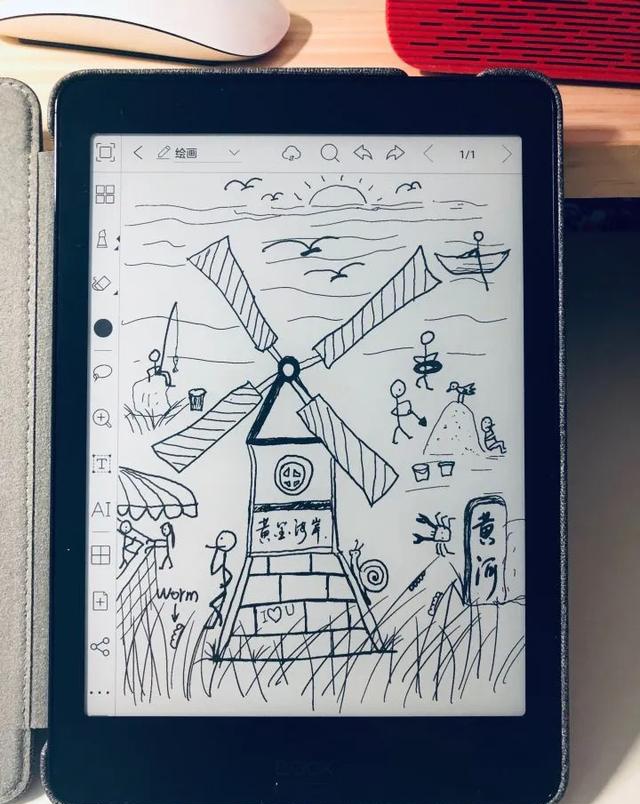 回到我的“初心”,买这个阅读器时,考虑到给孩子画画玩儿。对于这个电子书带的手写功能,我是满意的。电磁手写笔支持4096压感,就是笔画能根据压力体现出不同的笔迹粗细,这个也是手写笔的卖点。