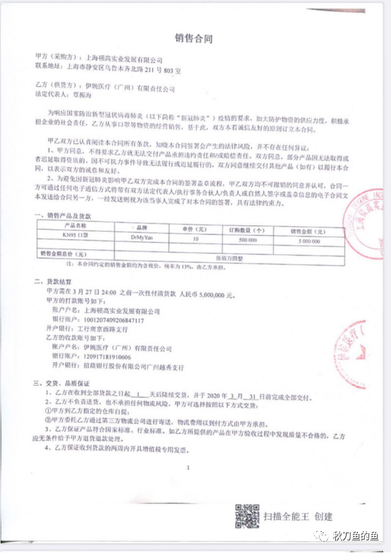 就在2020年3月27日,就发生了一起令人发指的诈骗事件,上海顿高实业发展有限公司受比利时政府委托于国内采购一批KN95口罩,因情况紧急当天上海顿高实业就与伊婉医疗(广州)有限责任公司签订了购买口罩的合同,购买数量500000个并付款500万元人民币。