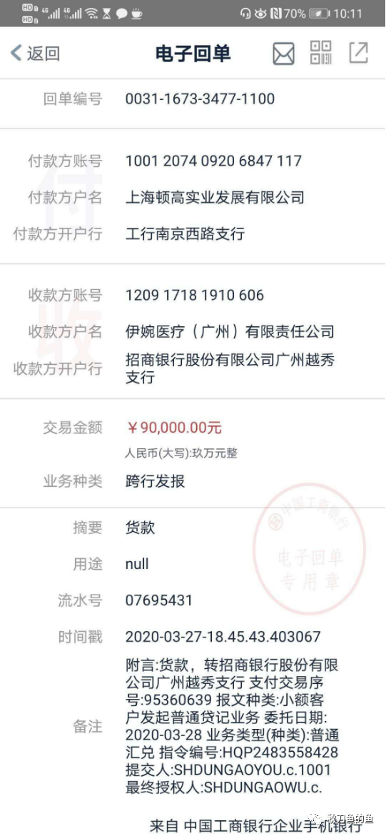 而后我们通过伊婉40%股东肖云尧了解到,法人及60%股东覃振海为代持,实控人为黄振生(东哥),而黄振生表示,雷盛洪以入股名义拿走公章及公司账户和法人账户,答应带资金入股。经了解黄振生不仅是老赖黑名单上的常驻人口,更是跟雷盛洪关系密切,两人合谋做口罩生意,黄振生更是把伊婉的公章和法人账户都让雷盛洪随意支配。