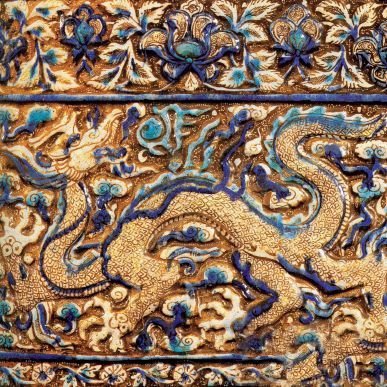 参考图六 13世纪70年代 伊朗 米纳伊彩釉龙纹陶砖 台北故宫博物院藏