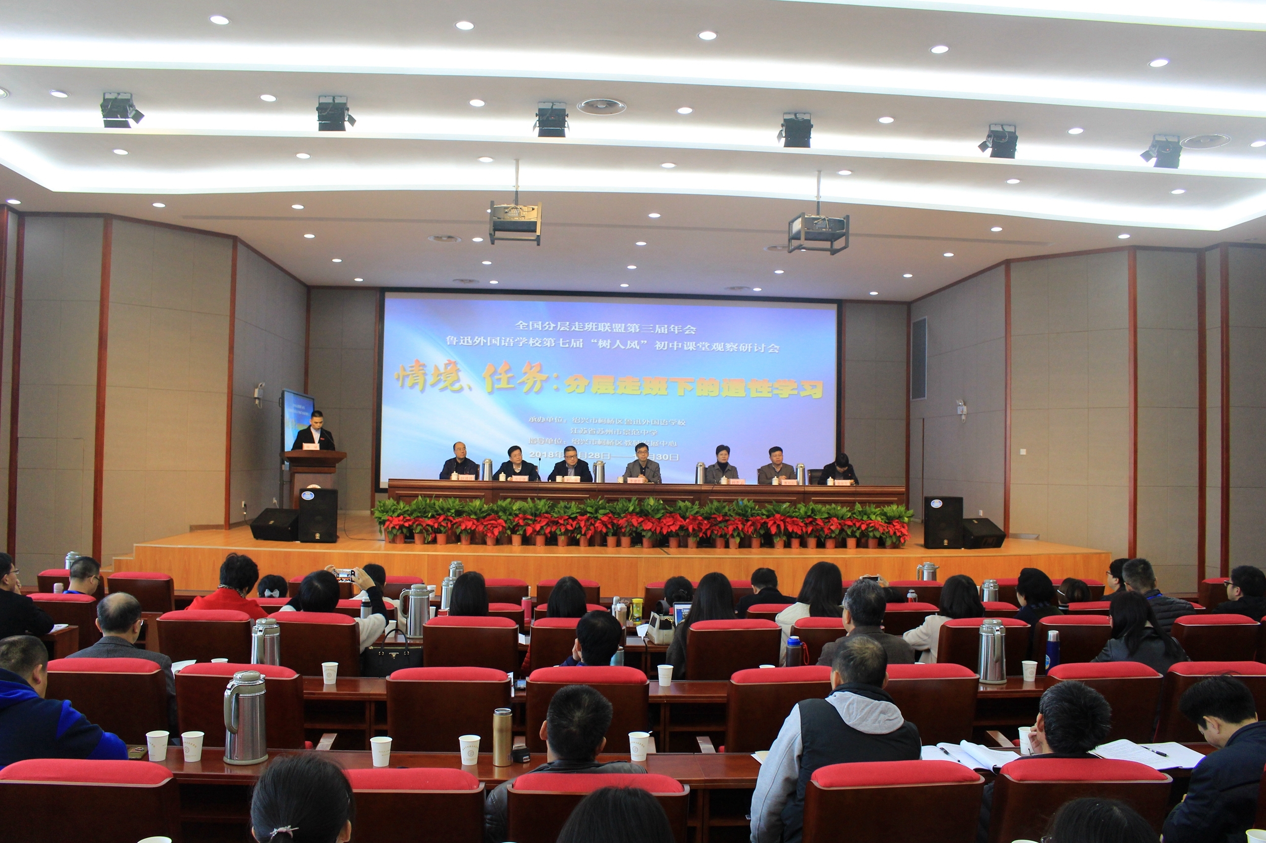 2015年初,学校在广泛宣传发动、精心制定方案的基础上,分年段、分学科尝试推进分层走班教学。在近五年,先后尝试了数学—英语捆绑式A-B分层,数学—科学捆绑式A-B-C分层,英语单科分层等分层模式。探索出“通过确定学生学业水平、学习态度、心理素质等因素,让学生根据自己的学习能力开展学习层次的自主选择,学校给予适当的建议后,最后家长和学生依照建议,结合自身意愿,选择相应的层次课程”的分层模式。经过几年的探索,初见成效,鲁外连续几年教学质量稳居柯桥区前列。2018年11月举行的第七届“树人风”初中课堂观察研讨会吸引10省32市县,300余名专家教师参会。