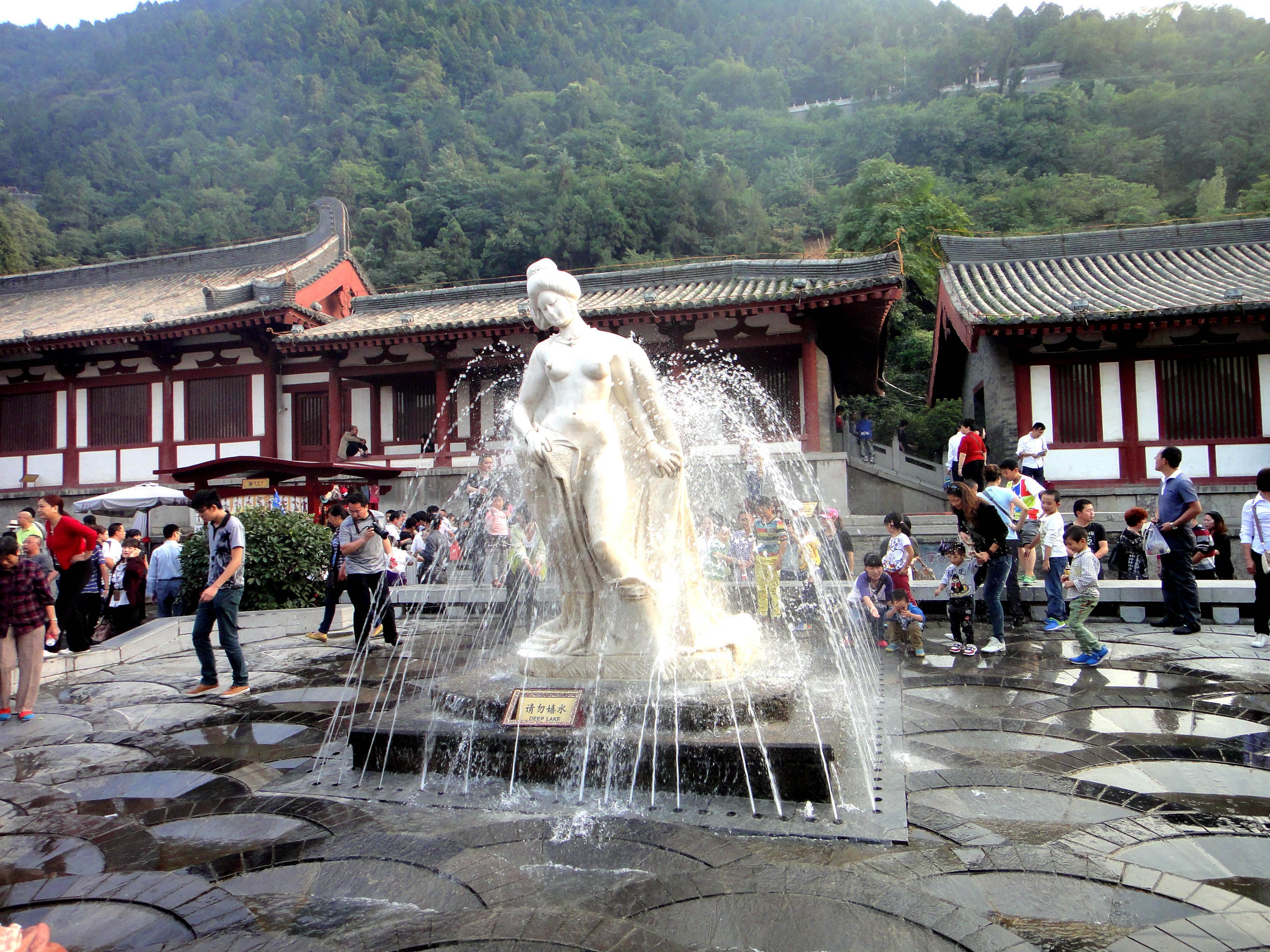 由于没请导游,也不知道从何开始到哪结束,只有随着人流,凭着感觉自行观看,首先看到的是一尊露出上身的身体汉白玉雕塑,婀娜多姿的身材、雍容的颜姿,这应该是杨贵妃在歌声中翩翩起舞,就像诗中所说春寒赐浴华清池,温泉水滑洗凝脂”;奢侈的浴池,低眉顺眼的女婢,侍儿扶起娇无力,始是新承恩泽时”。
