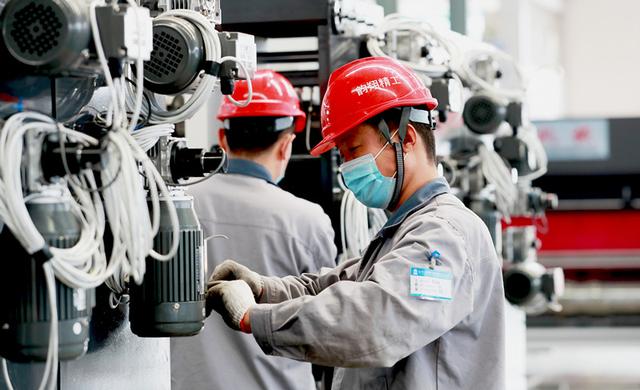 4月15日,在位于东光县的河北沧州韵翔纸箱机械有限公司车间内,技术工人正为国外客户作最后的整机检查。