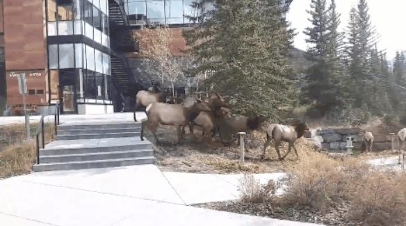 27岁的调酒师康纳·格拉维尔(ConnorGravelle)说,班夫现在“像是个鬼城”。他说,麋鹿和鹿已经占领空旷的街道,无处不在。一窝土狼幼崽把他的前院变成了新操场。他说,该镇的经济完全依靠旅游业。“没有它,我们什么都没有。”
