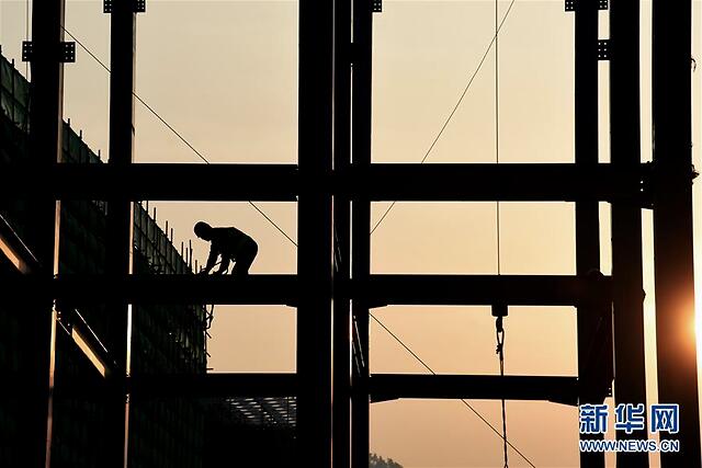 为促进当地体育产业复产复工,山东日照在积极防控疫情的同时,有序推进山东省第25届运动会相关场馆建设,生产防疫两不误。 这是4月15日,工人在省运会场馆日照国际足球中心建设现场施工。 新华社记者王凯摄
