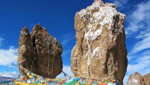 纳木错湖的门神。据说纳木错是掌管藏北草原财富的女神。因此,商人外出开店经商时,必须先到这里为门神祈祷,并经门神允许,才能敬拜纳木错。