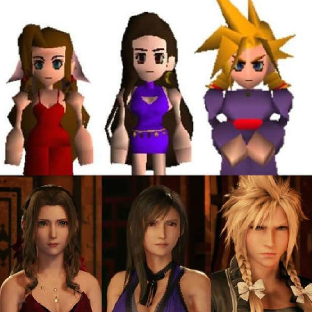 虽然现在看这些3D角色觉得粗糙,但在97年可是革命性创新,堪称元祖级别的3D游戏画面。现在重置版用了20多年前无法实现的技术,画面也是有了质的飞跃。