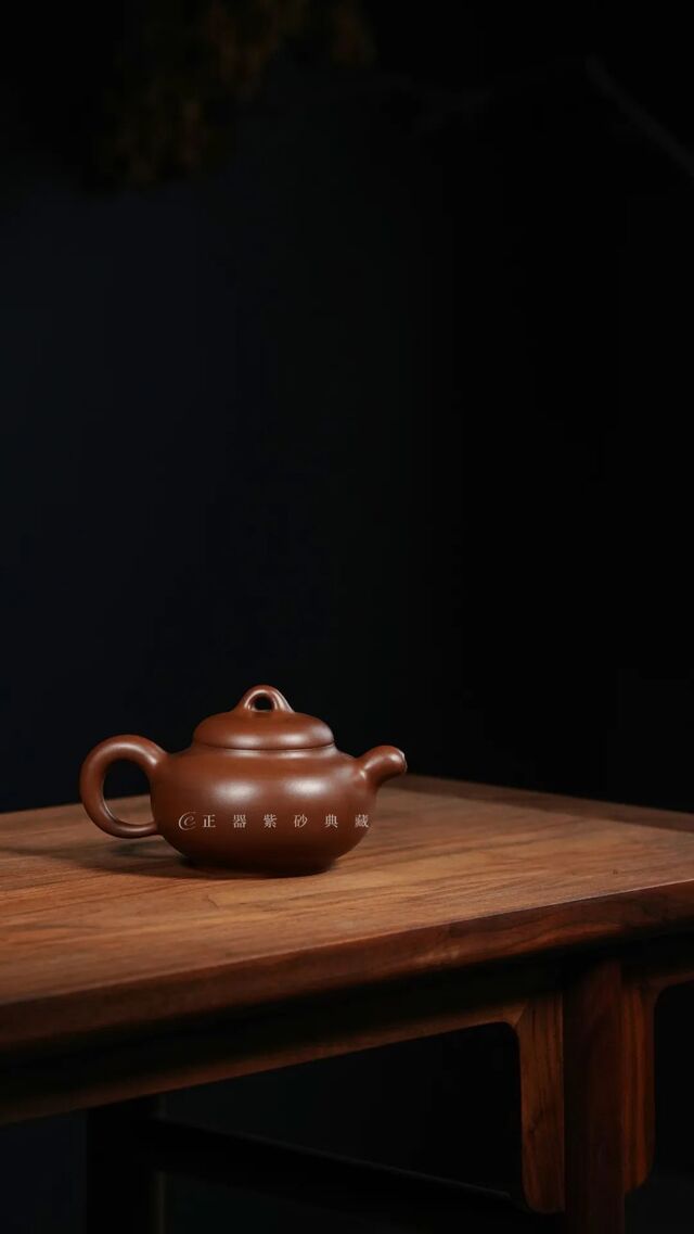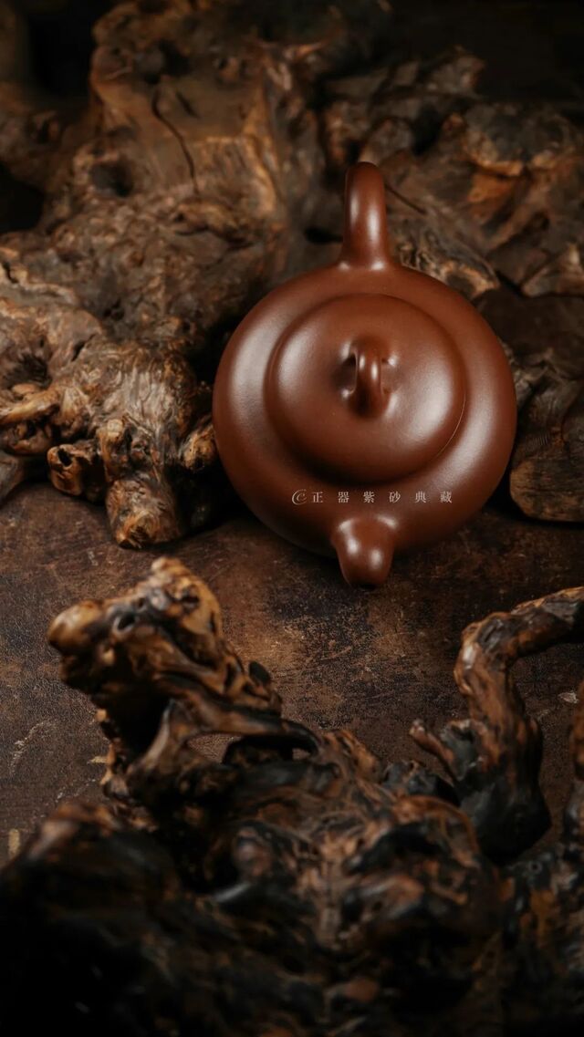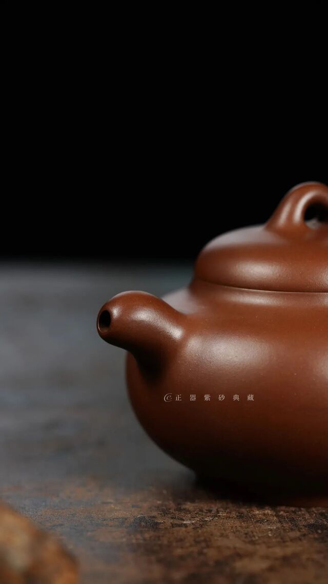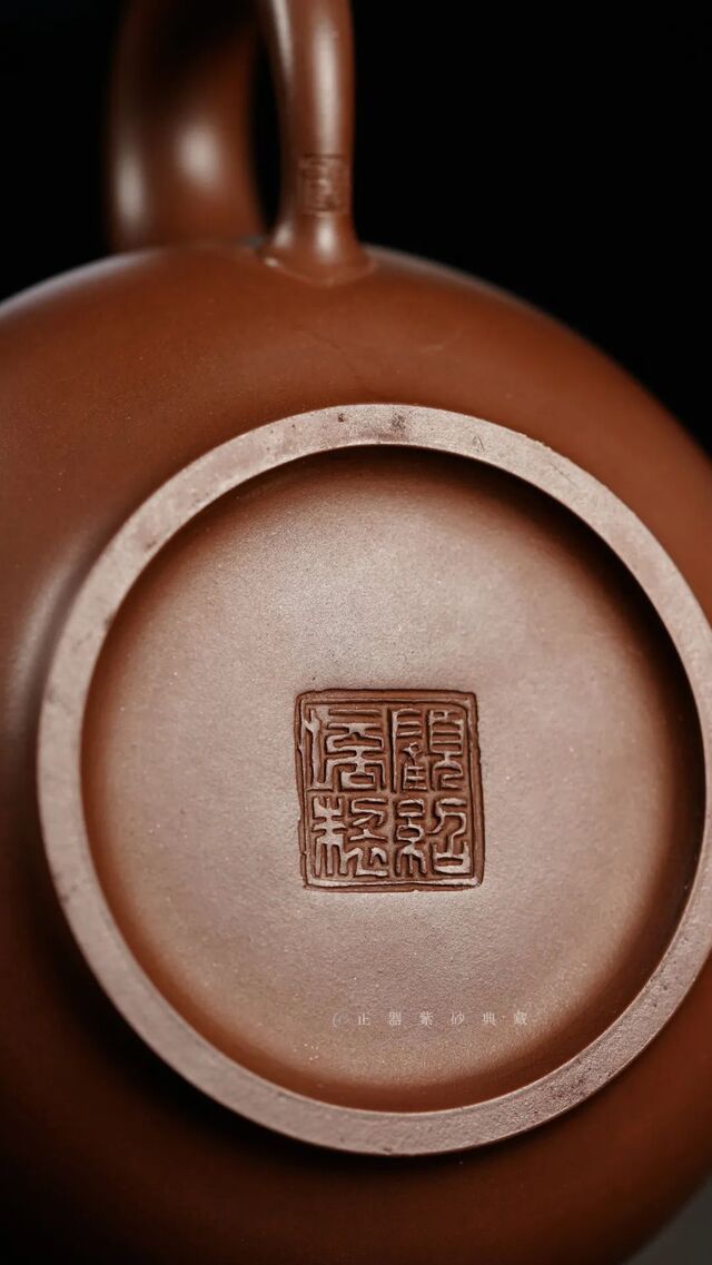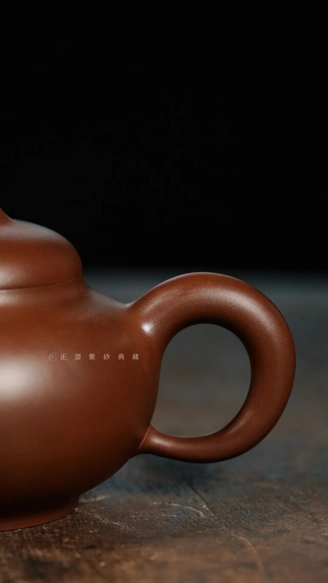 壶身造型微扁,但仍显匀挺,且丰腴圆润;腰线线条流畅柔和,一气呵成。 殊无凝滞、殊无装饰,古朴却超越一切 。