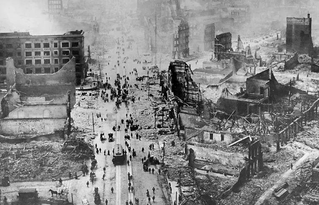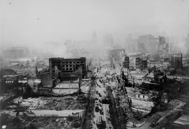 大火整整烧了三天三夜,约8平方公里范围内万物俱焚。在烈火和地震双重打击之下,旧金山经历了一场前所未有的浩劫。此后,旧金山虽然也经历过其他的地震,然而发生在上世纪初的这场灾难,却是旧金山人100年来最大的梦魇。