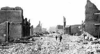 这场大地震仅仅持续了75秒钟,然而就是这75秒,几乎使旧金山成为一片瓦砾。更加可怕的是,地震过后不久,一场大火熊熊燃起,使震后的旧金山雪上加霜,遭到了毁灭性的打击。