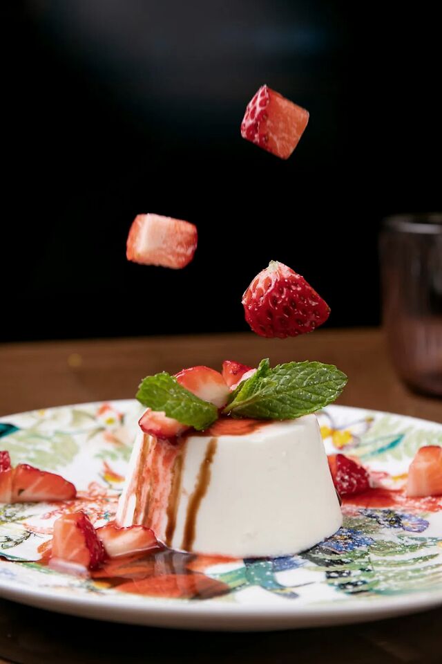 餐后再来一份甜品,很完美啦~草莓果肉与薄荷点缀清新宜人, 口感绵密丝滑,奶香味十足 ,没想到酒吧里的甜品那么惊艳!