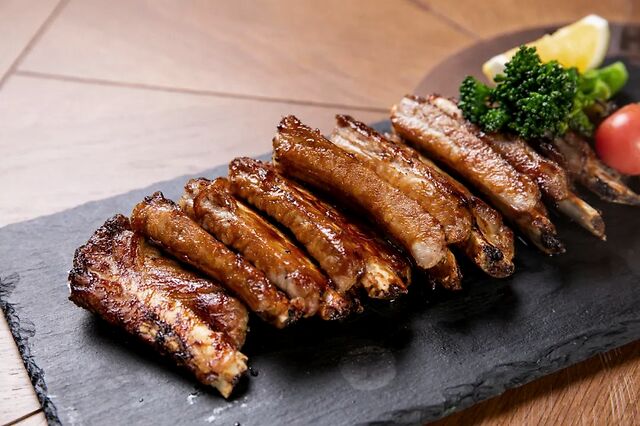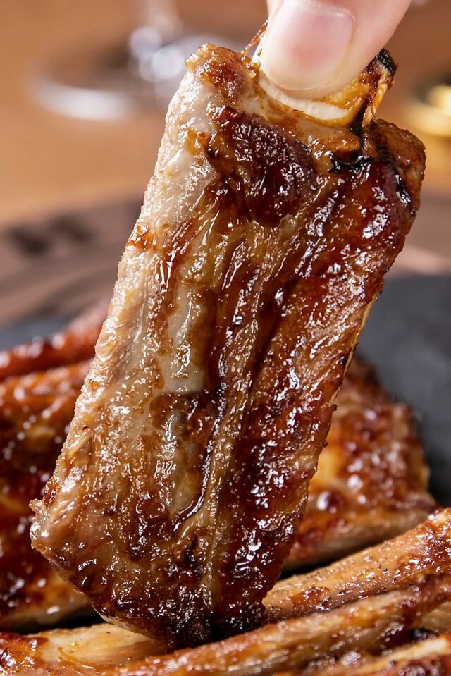 猪肋排刚上桌便是巅峰,时间与火力掌控的刚刚好, 烤制形成的表面“焦糖化烙印 ”,闻起来焦香四溢,十分诱人!
