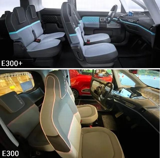 轿厢空间大幅增加,中控台设计不变,但座位布局升级为标准2+2四座。因此E300系列也有了2/3/4座三种版本,完全满足消费者的不同需求。E300和E300+均提供了短续航版本,160公里和155公里的设定可以满足日常代步,预计入门门槛分别会在5万元和5.5万元。而高续航版方面,E300为260公里,E300+有着更大空间可以布置电池组,续航也进一步提升到305公里,并且适配更大重量的载客需求,E300+对电机性能也进行了提升。