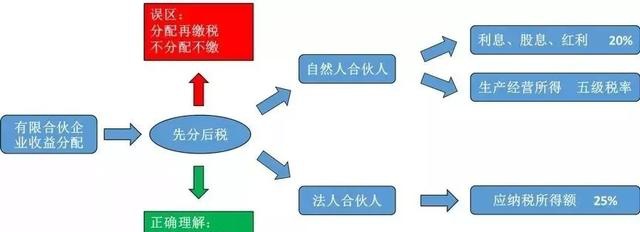 各位朋友要注意,合伙企业缴纳所得税都是“先分后税”的,从字面上理解,似乎是先将收益分配了再进行缴税,但小编想说,这只是想当然的说法,搞得好像不分配就不用缴税似的。“先分后税”正确的理解是先确定各合伙人应分配的所得,再根据所得计算缴纳所得税,这个应分配的所得包括了实际分配到合伙人手上的收益,还包括留在合伙企业没有实际到合伙人手上的收益,简单点说,就是管你分不分配,反正合伙企业赚了钱,你都得缴税。呵呵,没办法啊,就是这么规定的。