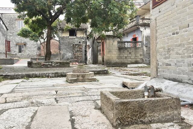 村中石板路遍布,与一般的岭南村落并无大异,在源吉林故居附近,有两口古井,相隔数米,一口为方,一口为圆。