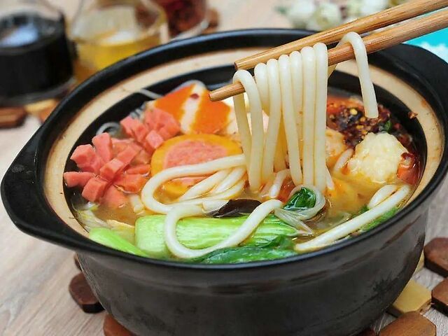 在2008年前后,或许有店家从麻辣烫中汲取了灵感,仅保留原版过桥米线的鹌鹑蛋,舍弃对食材新鲜度要求更高的里脊肉片、鸡脯肉片和豌豆尖等蔬菜,大量加入午餐肉、鱼糜淀粉丸子、肥牛片等等,既降低厨房的操作负担,相比于原版过桥米线,价格也更加平民,这种砂锅米线,开始成为东北米线的主流。