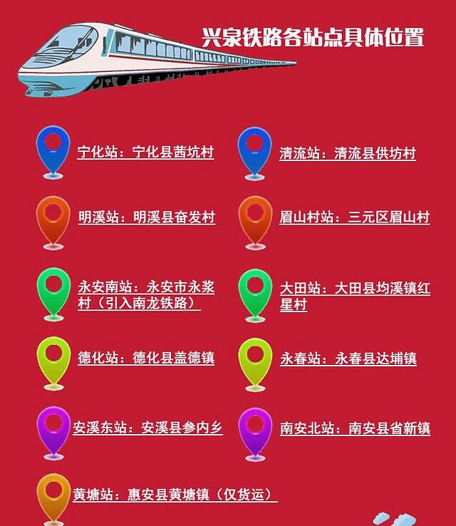兴泉铁路泉州段德化站为县级客货两用的兴泉铁路中间站,车站建筑面积约7000平方米,站场规模拟按2台4线布置,项目预计2020年年底完成站房主体建设施工,2021年7月实现通车。项目建成后对带动德化当地经济发展,联通江西到泉州经济带有重要意义。