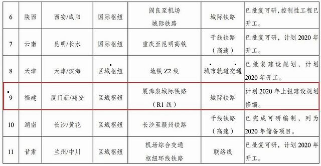 同时,文件中附上枢纽机场联通轨道交通重点项目清单,其中包含11条铁路线路,厦漳泉城际铁路(R1线)位列其中!目前的状态是,计划2020年上报建设规划修编。
