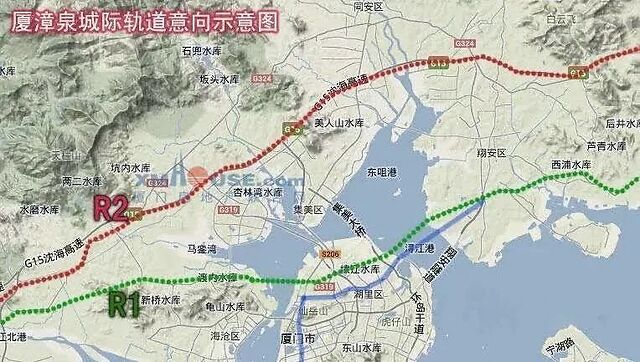 城际铁路R1线是厦漳泉城际轨道交通骨干线路,设计时速160公里,运行8辆编组城际列车组。据悉,R1线全长181公里,泉州段起于泉港,经惠安、台商、丰泽、晋江、南安再连接至翔安机场,而后穿过厦门市翔安区、穿东海域进入厦门高崎机场附近设站,再穿西海域到达漳州市。