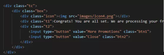 在这里把close 的类名命名为 btn2, 如上代码就实现了点击close按钮关闭弹窗的功能。