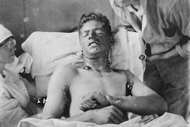 在这里,他看到很多被芥子气搞得不像人的士兵。