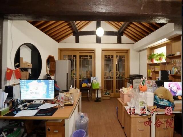琉璃厂的东街门口的广场就像一个巨大的四合院,隐藏在其中的房屋又是一个小的四合院。其中一个院落就位于琉璃厂文化街,格局为3北3南1东3西,室内精装修。