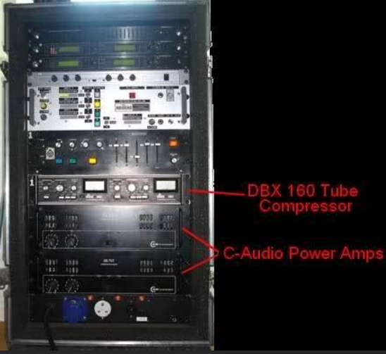 2个C-Audio后级放大器,4个412定制前安装式Marshall箱体,采用的是Electro-Voice EVM12L喇叭,麦克风用Shure SM-7b。