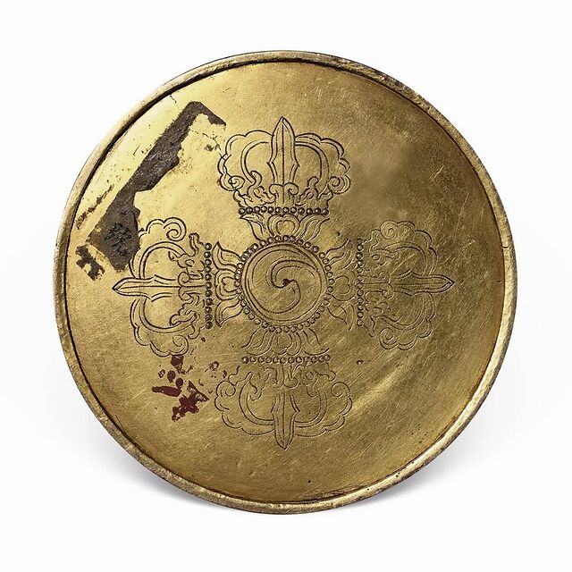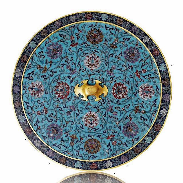 清康熙 铜胎掐丝珐琅仿古缠枝莲纹大铜镜