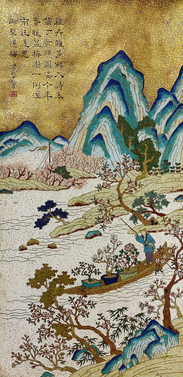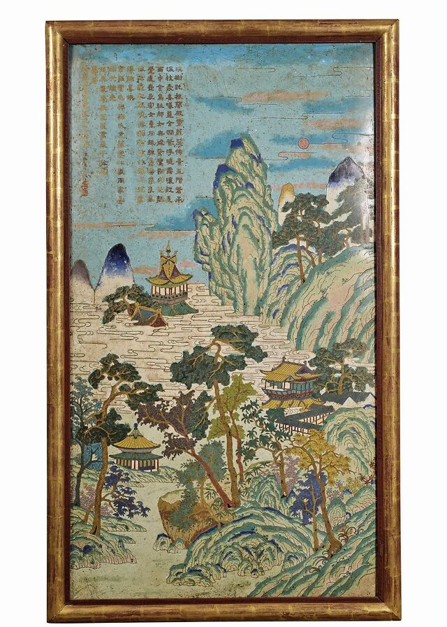 清乾隆 掐丝珐琅山水楼阁御题诗大挂屏