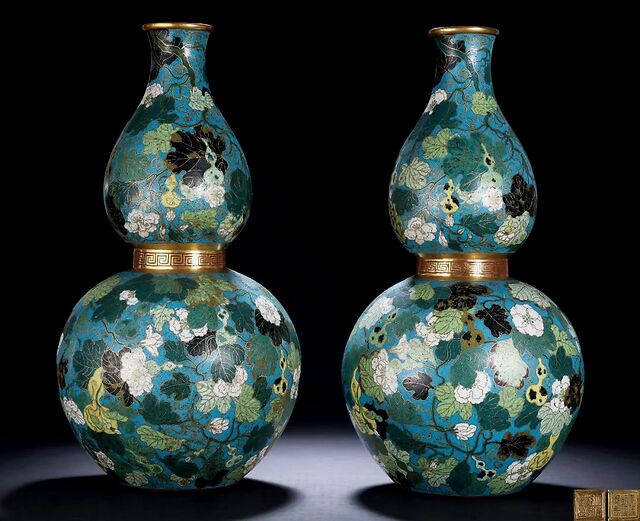 清乾隆 铜胎掐丝珐琅福禄万代大葫芦瓶 (一对)