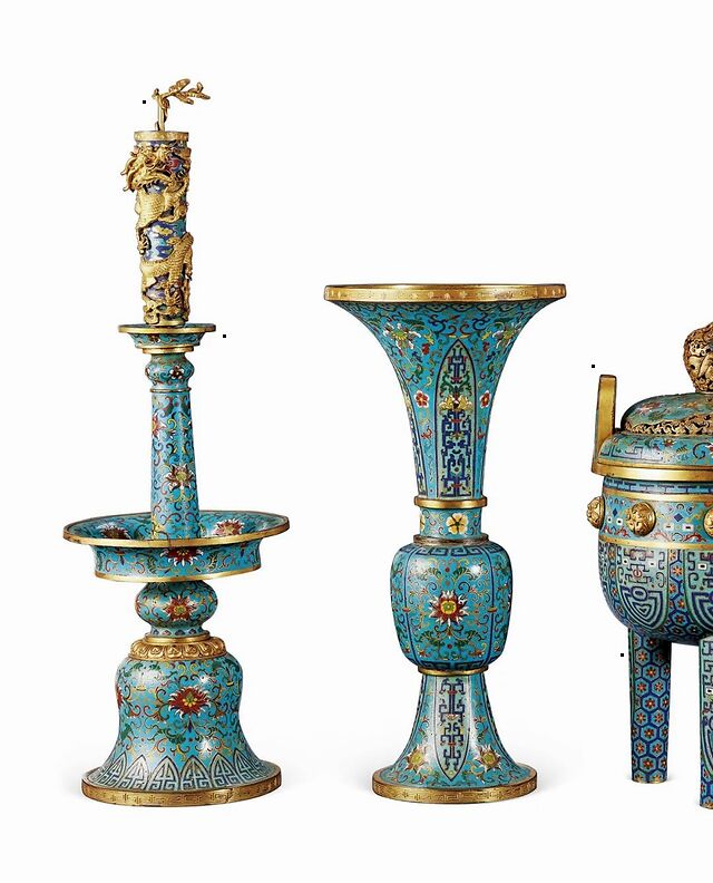 清乾隆 铜胎掐丝珐琅五供