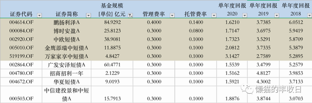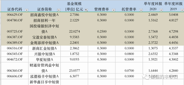 短债基金成立时间基本都不长, 看好短期业绩的小伙伴可以从第一张表格中进一步筛选 , 为稳妥起见,也可以留两年以上的业绩观察期 ,正好穿越紧货币和宽货币两种市场环境。