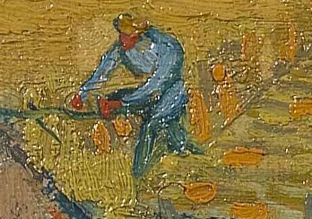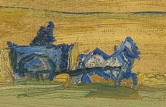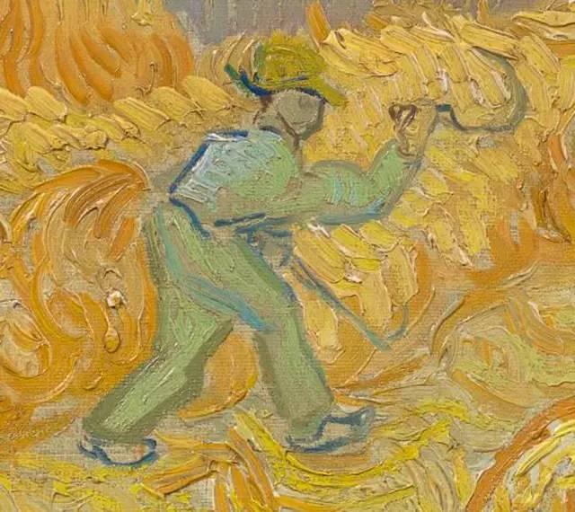 梵高的《麦田与收割者》、《黄背景衬托花瓶里的鸢尾花》、《鸢尾花》、《麦田》(高清细节)赏析