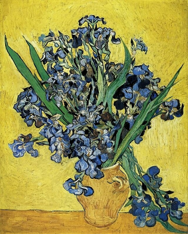 《鸢尾花》(Irises) 是梵高在1889年5月创作完成于圣雷米,材质为画布油画,作品尺寸为71X93cm,现存于洛杉矶。