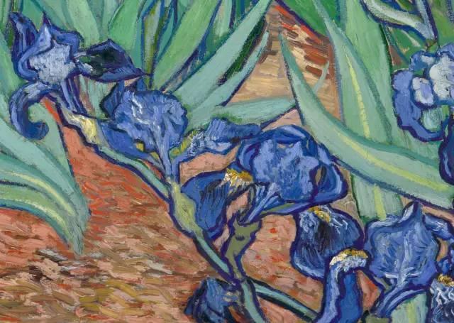 这幅《鸢尾花》,被称为梵高在“圣雷米时期最伟大的作品之一”,它远远地就能吸引住你的目光,色彩丰富,线条细致而多变,整个画面充满律动及和谐之美,洋溢着清新的气氛和活力。